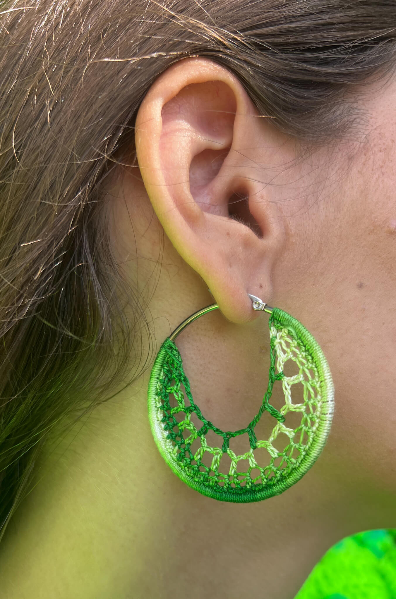 Ατσάλινα σκουλαρίκια κρίκοι πλεκτά χειροποίητα λαχανί