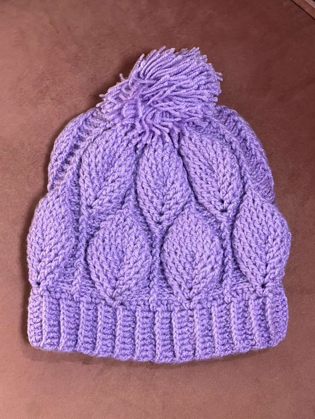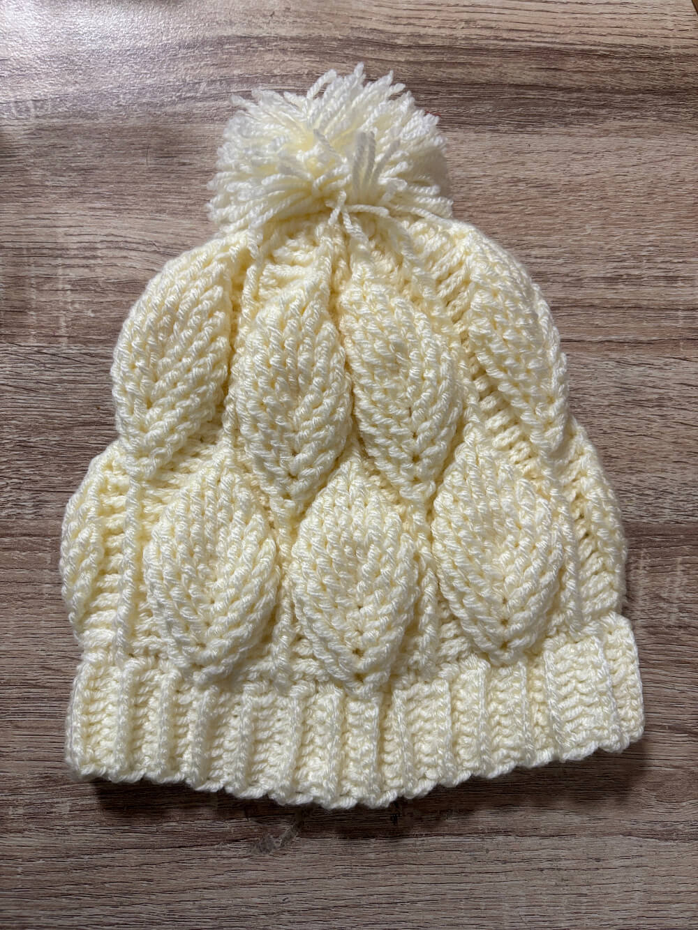 Κομψός πλεκτός σκούφος με λεπτομέρεια φύλλου, σε διακριτική πλέξη. Ζεστός, άνετος και ιδανικός για χειμωνιάτικες βόλτες.