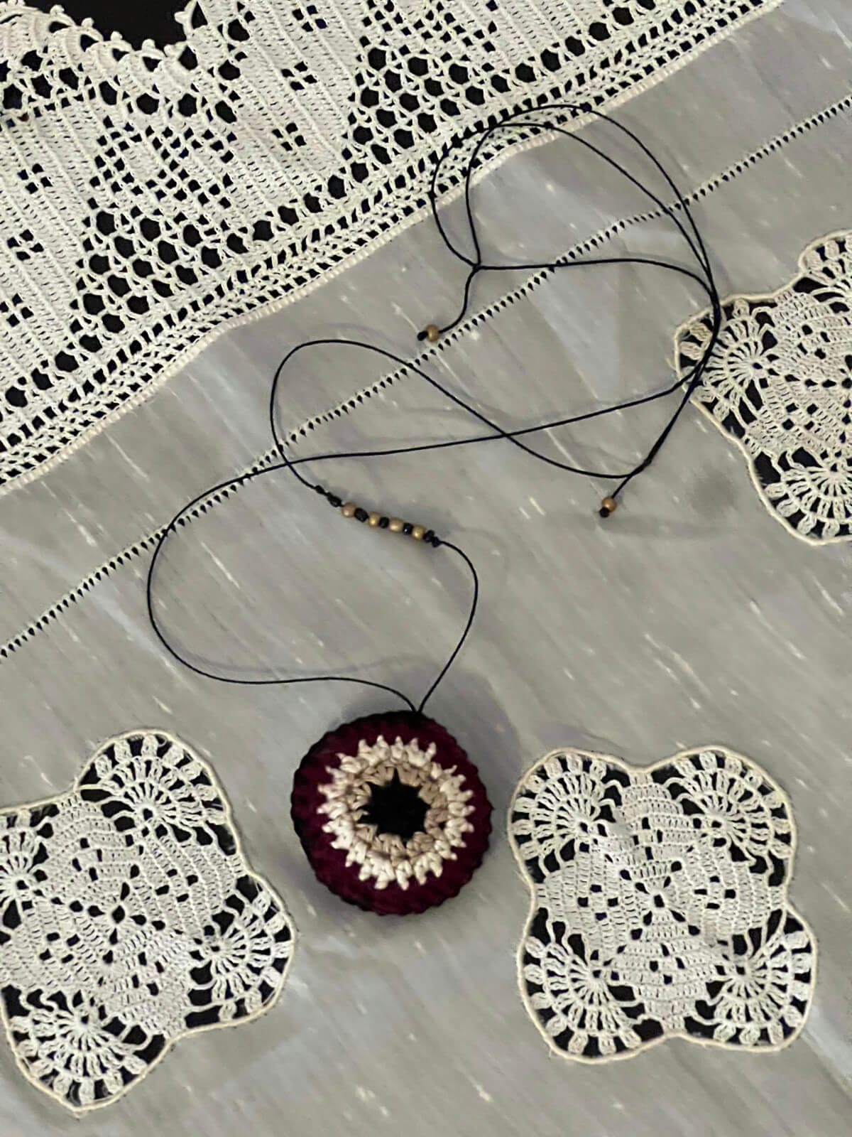 Κρεμαστό πλεκτό γούρι μάτι μπορντό