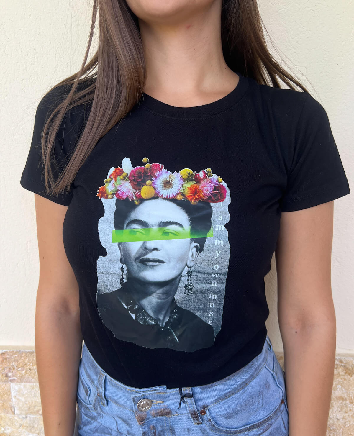 Μαύρο T-shirt Frida Kahlo από την συλλογή μας neon starstruck. Γιατί το απλό δεν είναι πάντα βαρετό.