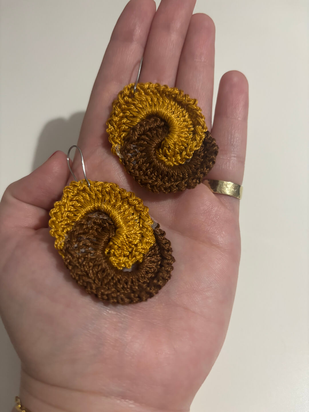 Ανακαλύψτε τα πλεκτά χειροποίητα σκουλαρίκια σε καφέ και μουσταρδί αποχρώσεις με λεπτομέρεια αλυσίδας, διαθέσιμα στο Stevi-s.gr. Μοντέρνα, ελαφριά και ξεχωριστά, ιδανικά για να απογειώσουν κάθε εμφάνιση με boho και urban στυλ!