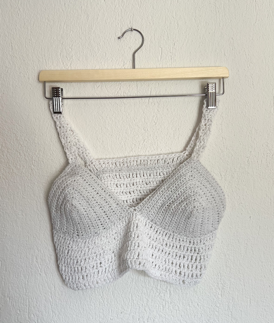 Αναδείξτε το στυλ σας με το πλεκτό λευκό crop top! Χειροποίητο και δροσερό, προσθέτει κομψότητα και άνεση στις καλοκαιρινές σας εμφανίσεις. Ιδανικό για κάθε περίσταση.