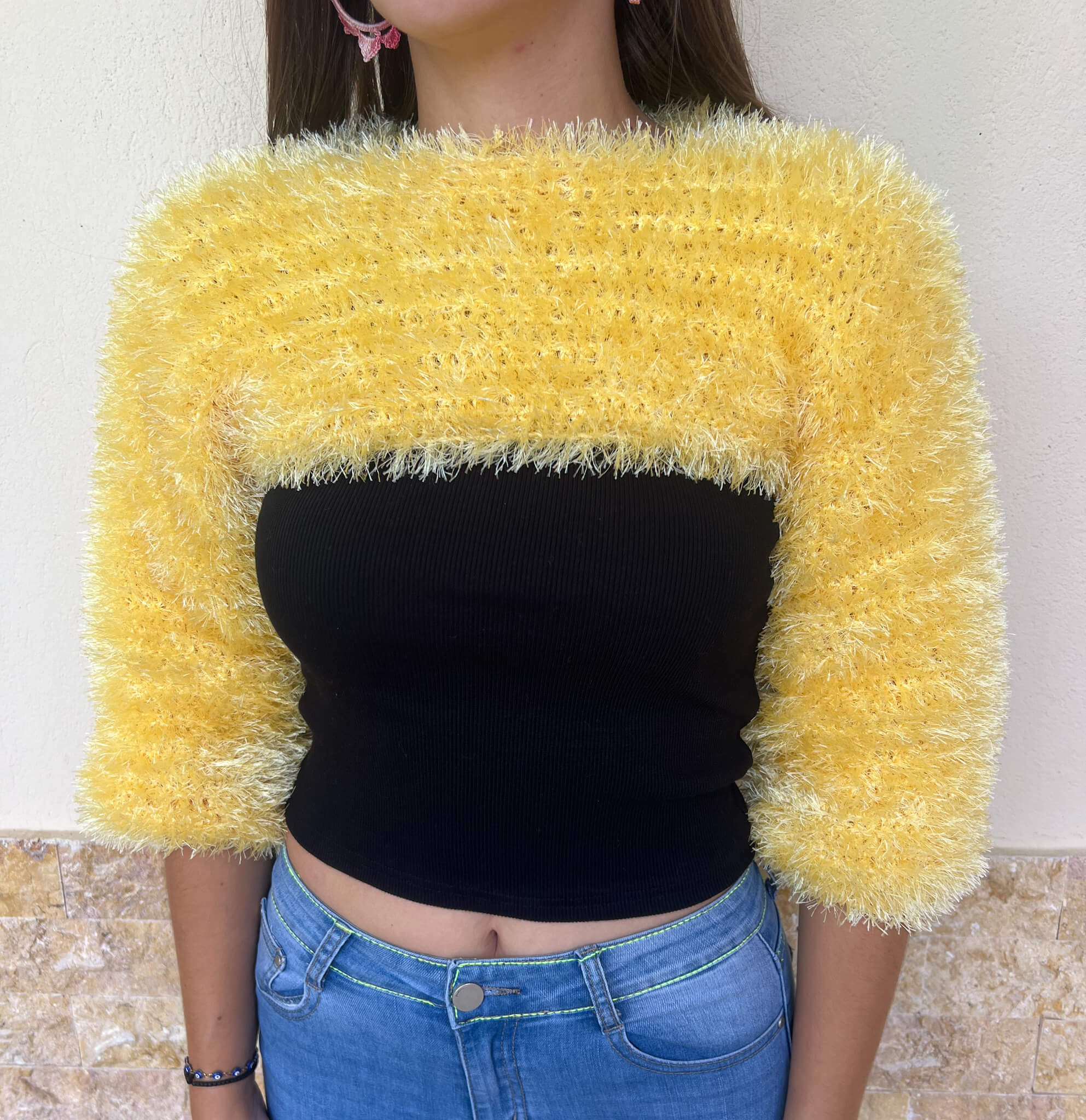 Αυτό το πλεκτό κίτρινο top μπλουζάκι με μανίκια είναι δίνει ένα χαρούμενο και ανάλαφρο στυλ. Φτιαγμένο από απαλά, φυσικά νήματα, προσφέρει άνεση και διαπνοή, καθιστώντας το ιδανικό για καθημερινές εμφανίσεις. Μπορεί να συνδυαστεί άψογα με τζιν, φούστες ή παντελόνια για ένα casual ή πιο εκλεπτυσμένο look.