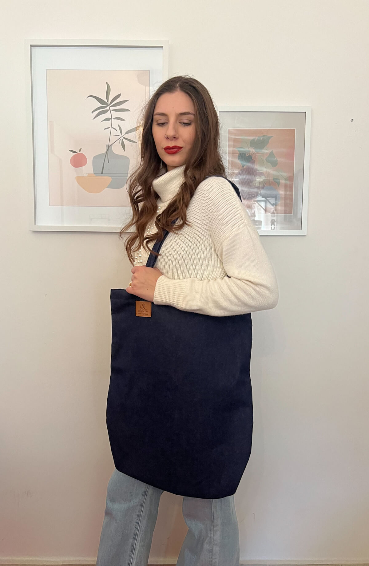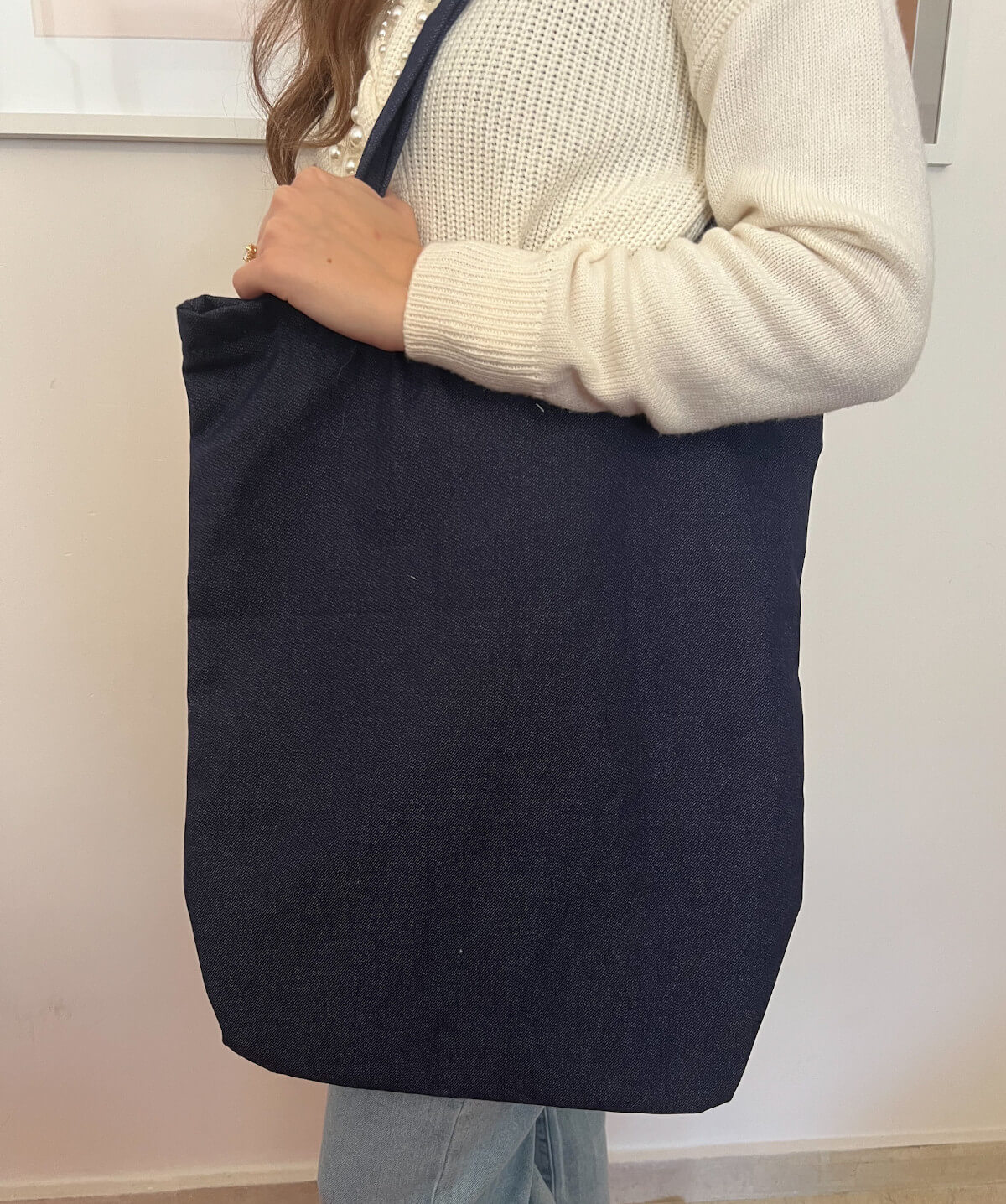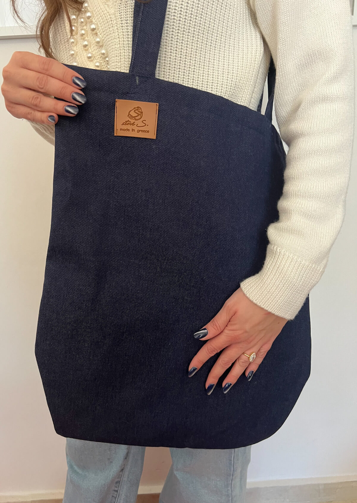Αποκτήστε την κομψή και πρακτική tote bag denim σε σκούρο μπλε χρώμα. Ιδανική για καθημερινή χρήση, με άνετη χωρητικότητα και διαχρονικό στυλ. Συνδυάστε άνεση και μόδα σε κάθε σας εμφάνιση!